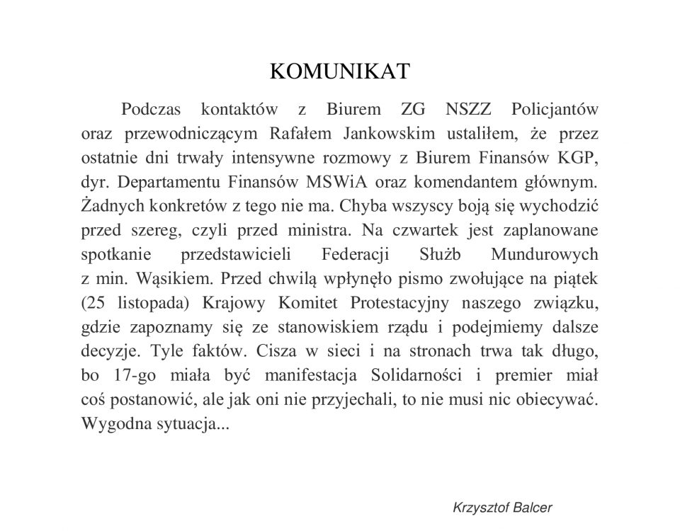 KOMUNIKAT Podczas kontaktów z Biurem ZG NSZZ Policjantów oraz przewodniczącym Rafałem Jankowskim ustaliłem, że przez ostatnie dni trwały intensywne rozmowy […]